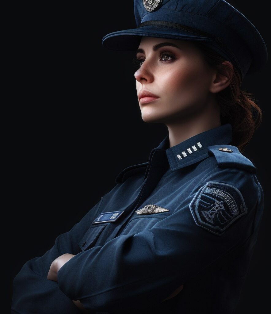 Confident security officer in military uniform looking at camera seriously generated by artificial intelligence