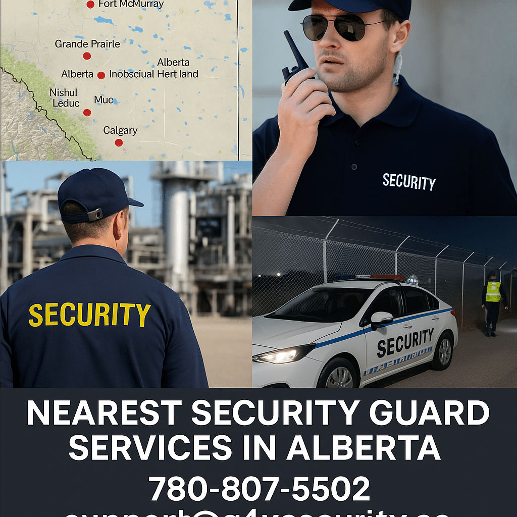 G4U Security Ltd understands the significance of proximity and response time for operations that run in demanding environments, which is why our nearest security guard services in Alberta — strategically positioned across oil & gas fields, energy facilities, manufacturing corridors, logistics hubs, and wildfire-prone zones – offer near security guard services 24/7 to keep people, property, and production secure. With licensed officers providing GPS-verified patrols as well as digital reporting for 24/7 protection we combine licensed officers, GPS-verified patrols and digital reporting to safeguard people, property and production 365 days a year.